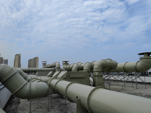 實驗性室有機廢氣物 → 活力性炭濾過器 → 引生產的風機 → 進行排放
